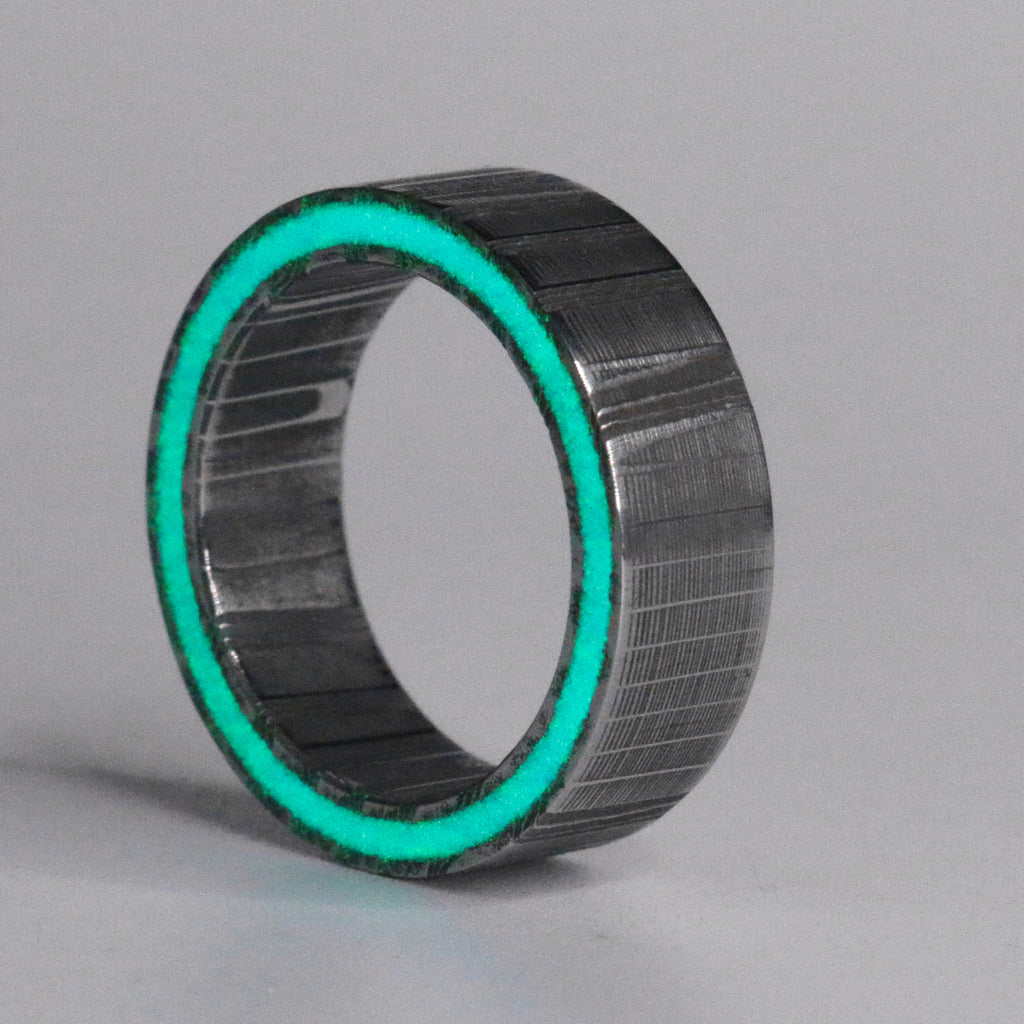 Here's a quick video that shows what goes into making our rings. We hand craft each ring in house made specifically for you. We use the highest grade carbon fiber, ultra pure epoxy that has been cured and post cured for maximum strength, super bright glow and high grade materials across the board.
