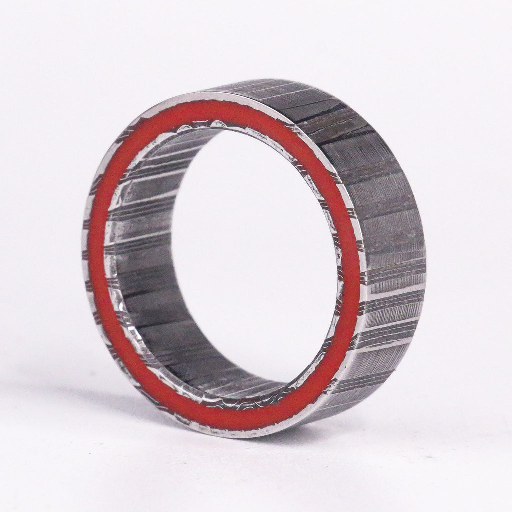 This is made from Damascus Steel from Vegas Forge. It is a one of one and I'v enever ever seen anyone make a ring remotely like this. The damascus was deep etched for 7 full days to achieve this look.