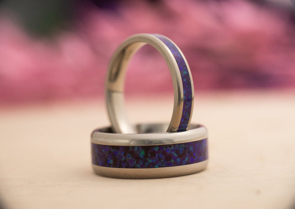 The Lavender ring glows with deep purples and soft violet tones, shifting to flashes of blue with every movement. It’s calming and mysterious, like dusk settling over a blooming field—made for those who move gently but leave a lasting impression.
