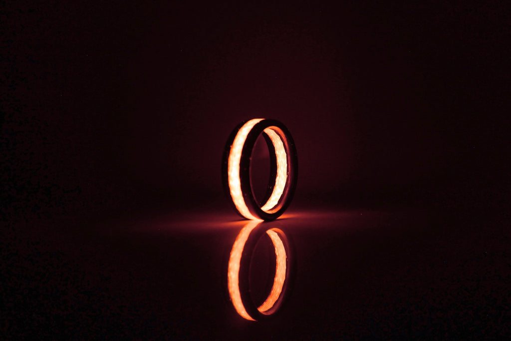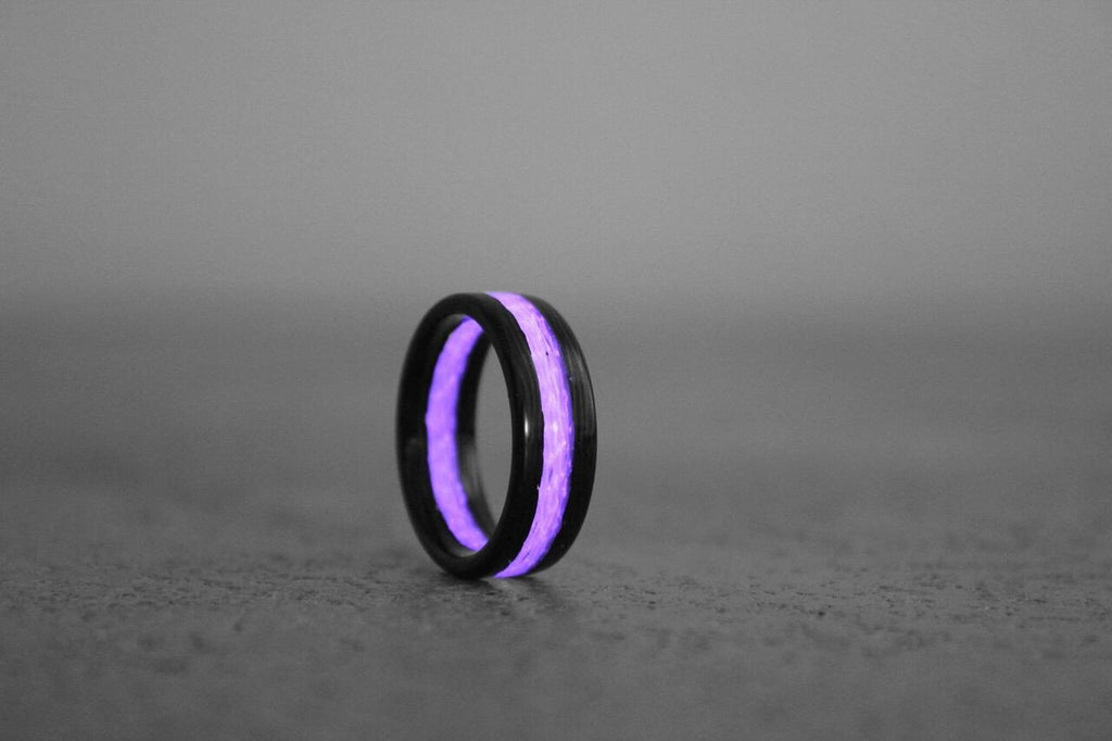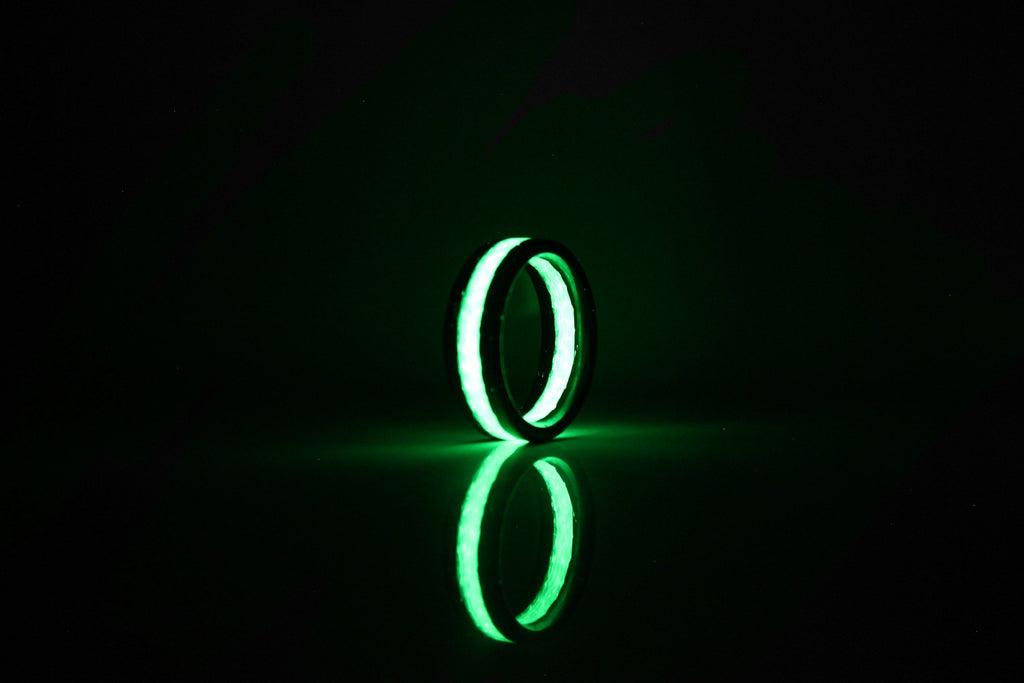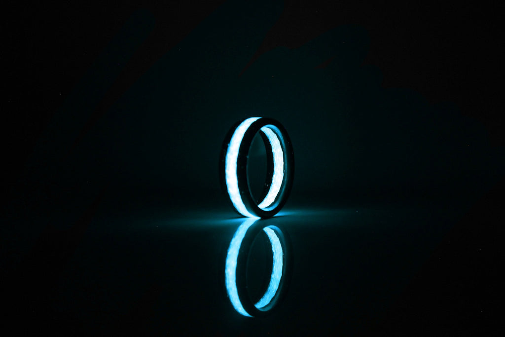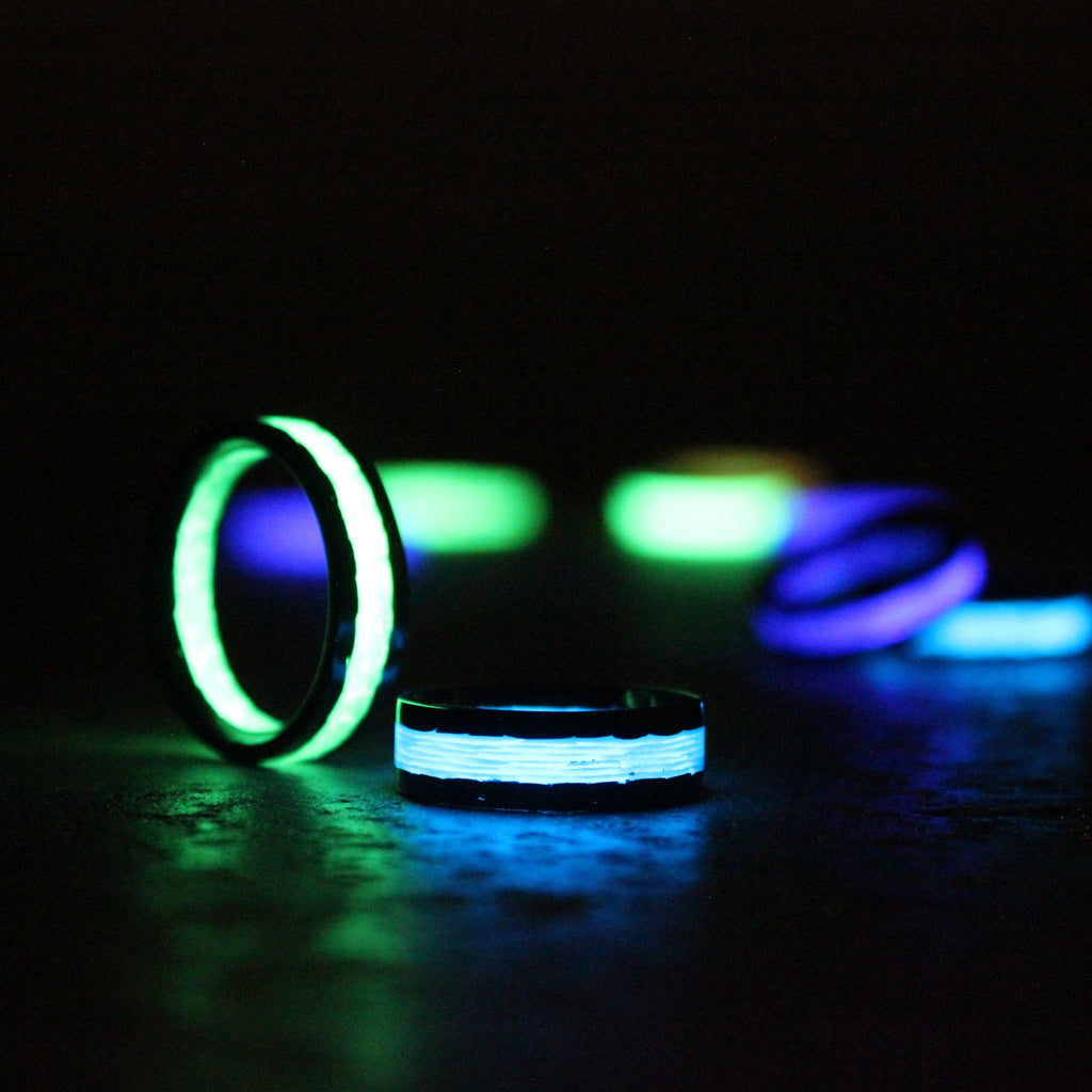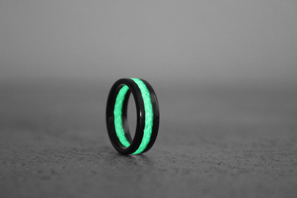 Here's a quick video that shows what goes into making our rings. We hand craft each ring in house made specifically for you. We use the highest grade carbon fiber, ultra pure epoxy that has been cured and post cured for maximum strength, super bright glow and high grade materials across the board.