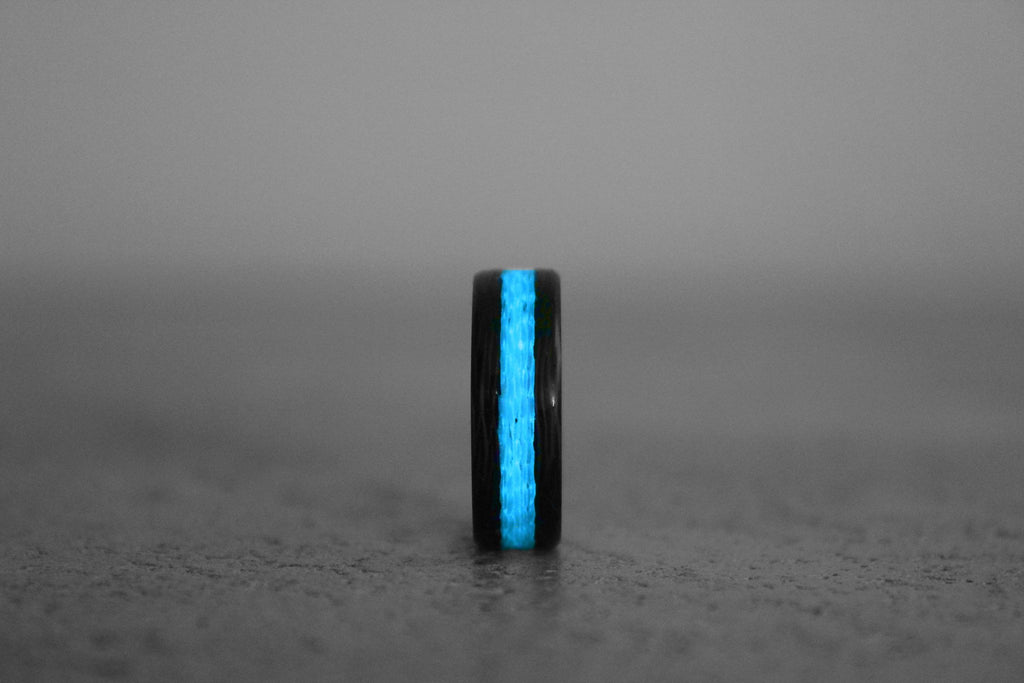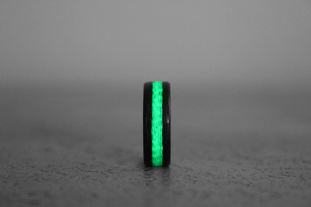 This design is our iconic design that blasted Rune Refinery into the stratosphere. A single, bright, glow in the dark, lume stripe right down the middle sandwiched by strong, lightweight carbon fiber with comfortable shaping made this design what it is. It's unique simplicity is what makes it such an iconic design. We designed this design to be an affordable, hand crafted carbon fiber, lume ring that is perfect as a daily wear or mix and match depending on the occasion.