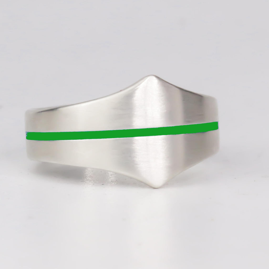 A ring so perfect and balanced. Each ring is carefully crafted with your choice of precious metal and lume stripe. Each lume is a culmination of multiple lume colors to create a custom lume different from nearly anything we have used before.